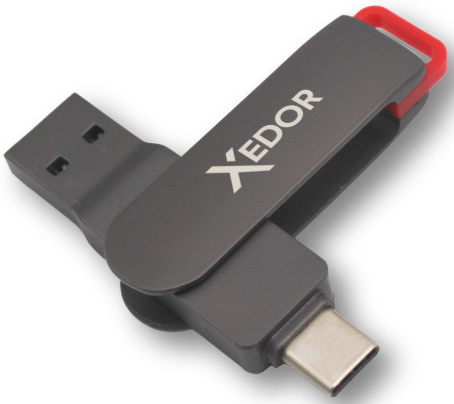 De Xedor USB-stick Blaze, uitgerust met zowel een USB-C- als USB-A-aansluiting en een opslagcapaciteit van 64 GB, 128 GB of 256 GB, biedt deze stick de perfecte oplossing voor het opslaan en overdragen van al je bestanden. Met een downloadsnelheid van 1760Mbps en een uploadsnelheid van 1360Mbps hoef je nooit lang te wachten om je bestanden te openen of te delen. Dankzij het handige draaisysteem kun je de USB-stick veilig afsluiten. De USB-C- en USB-A 3.2 Gen 1-connectiviteit zorgt voor brede compatibiliteit met verschillende apparaten en systemen.
